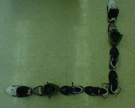 2º: Dado que el teorema de Pitágoras solo funciona para triángulos de 90 grados, alinea tus zapatos para formar la letra L, así: